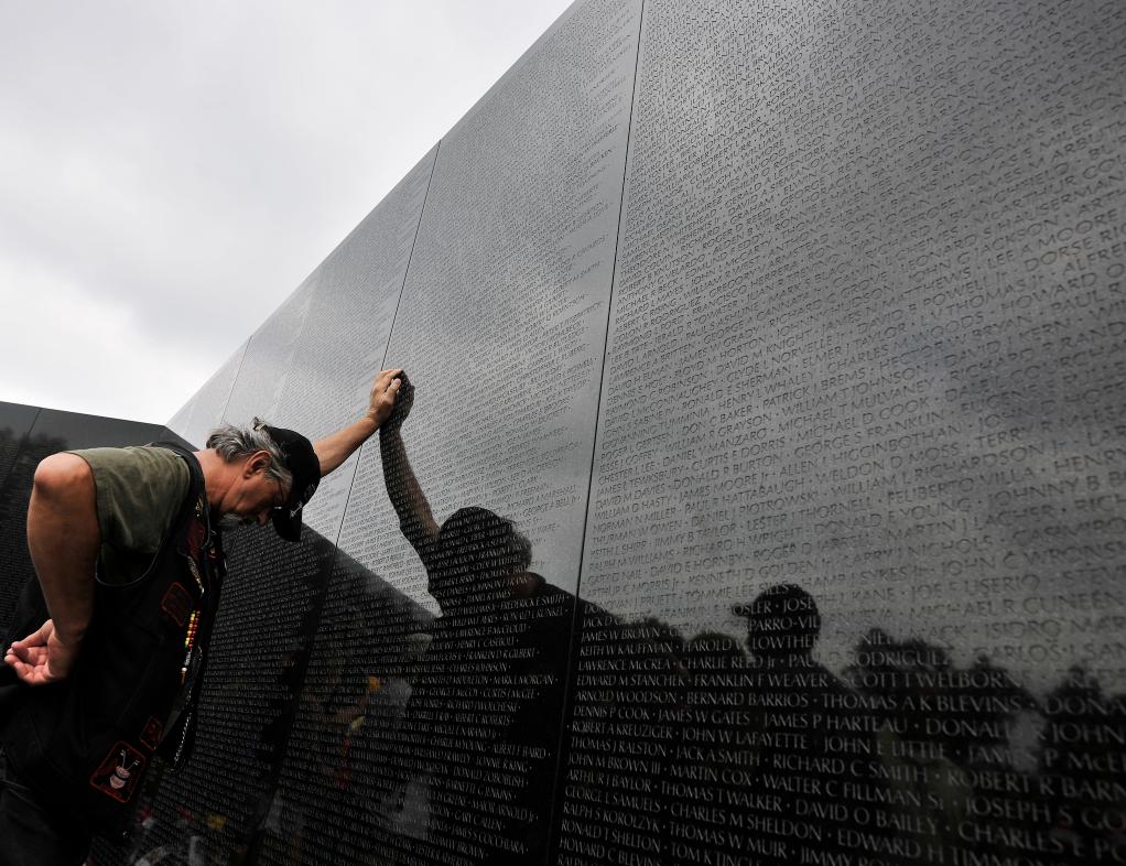 2010年5月29日,在美國(guó)首都華盛頓市中心的越戰(zhàn)紀(jì)念碑前,一名老兵懷念去世的戰(zhàn)友。新華社記者張軍攝