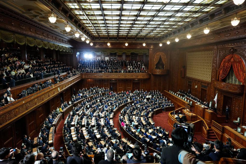 這是1月23日在日本東京拍攝的國會眾議院全體會議現(xiàn)場。日本眾議院議長額賀福志郎當(dāng)天在眾議院全體會議上宣讀解散詔書,日本眾議院正式解散。新華社記者賈浩成攝
