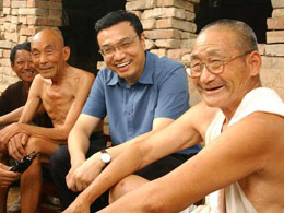 2003年8月8日,李克強(qiáng)任河南省委書記時(shí)與河南新鄉(xiāng)農(nóng)民聊天。