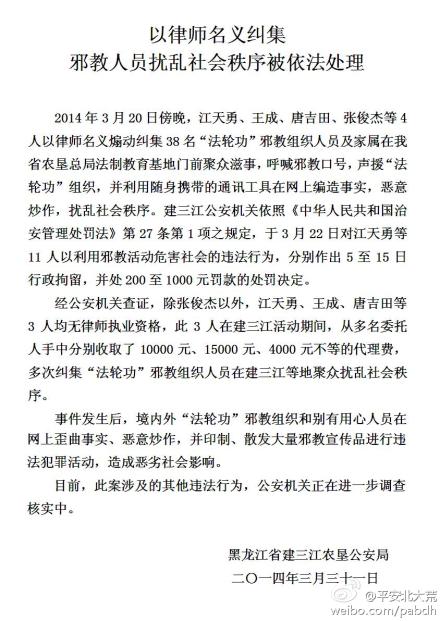 公安依法處理利用邪教活動(dòng)擾亂社會(huì)秩序人員