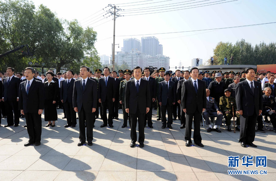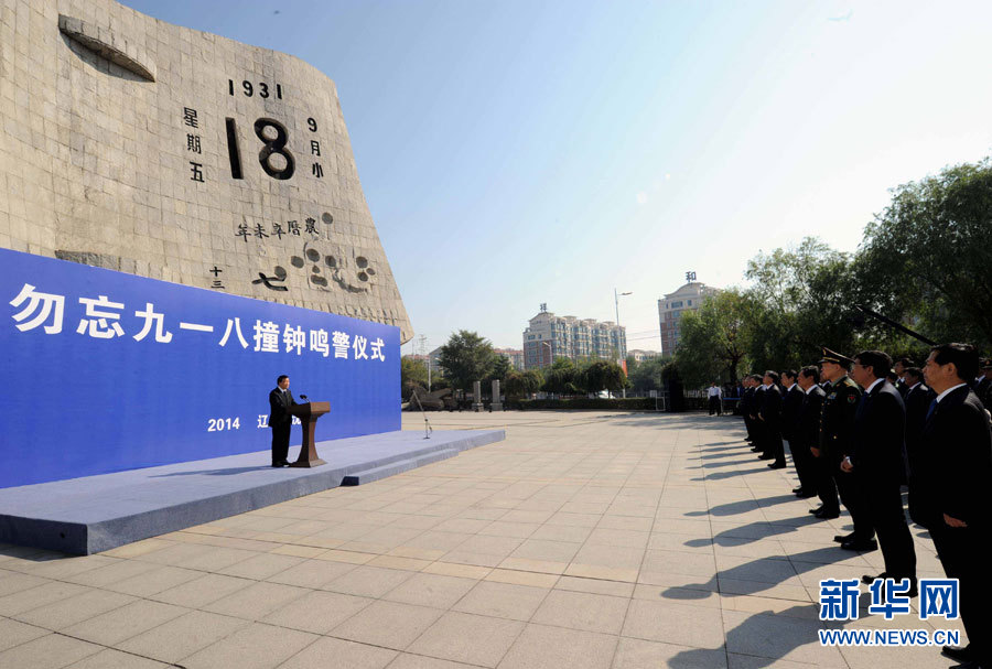 9月18日,勿忘九一八撞鐘鳴警儀式在遼寧沈陽“九·一八”歷史博物館前的殘歷碑廣場舉行。中共中央政治局常委、中央書記處書記劉云山出席儀式并講話。新華社記者 饒愛民 攝