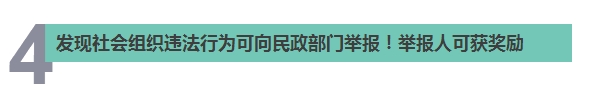 民政部18日發(fā)布《社會組織登記管理機(jī)關(guān)受理投訴舉報(bào)辦法(試行)》,明確登記管理機(jī)關(guān)接受和處理對涉嫌違反社會組織登記管理法律法規(guī)的行為或者對非法社會組織活動(dòng)的投訴舉報(bào)。登記管理機(jī)關(guān)將根據(jù)實(shí)際情況對舉報(bào)人給予一定的獎(jiǎng)勵(lì)。民政部還設(shè)立舉報(bào)郵箱jbshzz@sina.com,歡迎社會公眾對以“中國”“中華”“全國”等名義及跨省開展活動(dòng)的非法社會組織活動(dòng)進(jìn)行舉報(bào)。提倡實(shí)名舉報(bào),民政部門依法保護(hù)舉報(bào)人的合法權(quán)益,對舉報(bào)人的相關(guān)信息嚴(yán)格保密。