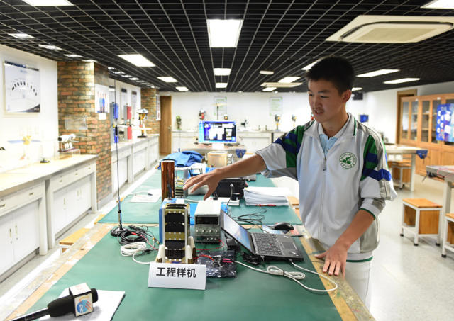 習(xí)近平來到學(xué)校的天工苑通用技術(shù)中心,在八一學(xué)校與中國航天科技集團(tuán)航天人才開發(fā)交流中心共同舉辦的科普小衛(wèi)星課堂上,仔細(xì)觀看學(xué)生們正在研發(fā)的我國首顆中學(xué)生科普小衛(wèi)星,向指導(dǎo)教師和學(xué)生了解衛(wèi)星實(shí)驗(yàn)內(nèi)容和特色功能。