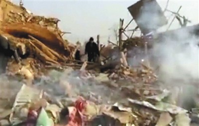 12月24日13時左右,河北唐山豐潤燕子河村突發(fā)嚴(yán)重爆炸,現(xiàn)場一片狼藉(視頻截圖)。圖/視覺中國