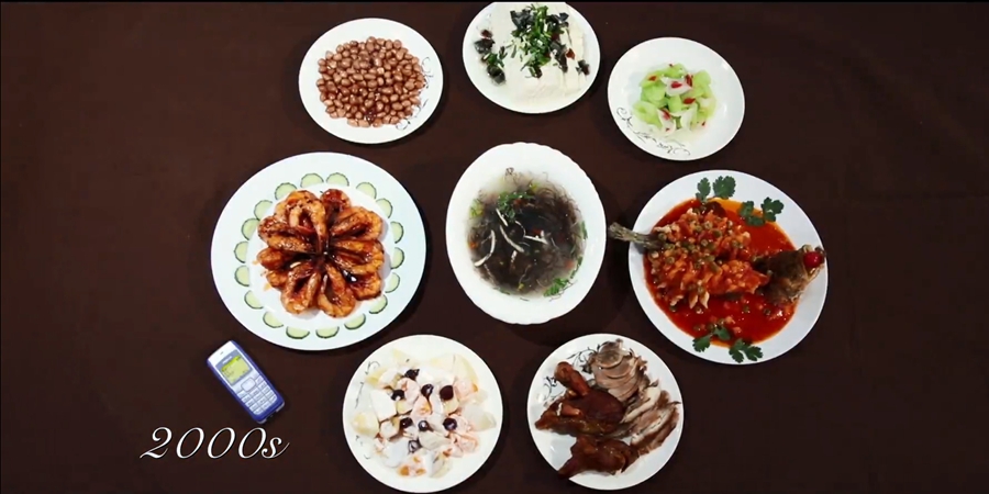 視頻名為《年夜飯的變遷》,生動展現(xiàn)了改革開放40年來中國人年夜飯的變遷,從滿足溫飽到豐盛美味,再到追求營養(yǎng)健康,折射出百姓生活水平的顯著提高。