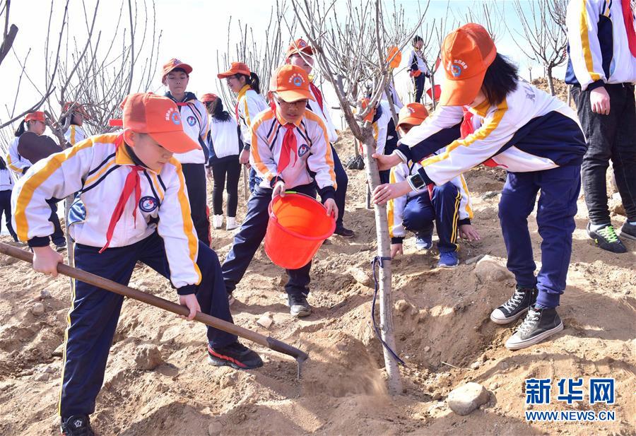 3月11日,在河北石家莊新樂(lè)市體育公園,新樂(lè)市實(shí)驗(yàn)小學(xué)的學(xué)生們?cè)谥矘?shù)。 在植樹(shù)節(jié)即將到來(lái)之際,各地紛紛組織植樹(shù)活動(dòng),為大自然添新綠。 新華社發(fā)(賈敏杰 攝)