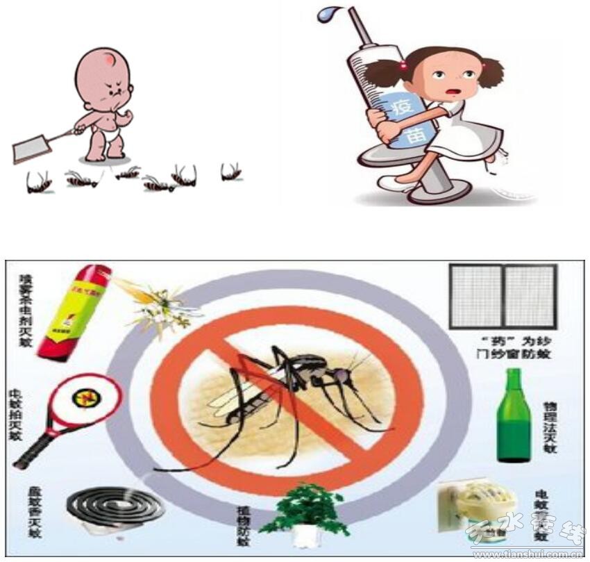 2.滅蚊防蚊:是切斷傳播途徑的重要措施。清掃衛(wèi)生死角、積水,疏通下水道,噴灑消毒殺蟲藥水,消除蚊蟲孳生地,降低蚊蟲密度。農(nóng)村重點是消滅牲畜棚(特別是豬圈)的蚊蟲。夜間睡覺防止蚊蟲叮咬可用蚊帳、驅(qū)蚊劑等,不提倡露宿。