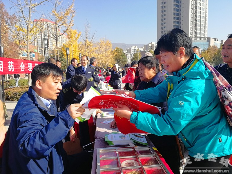 10月31日,天水市2018年“全國安全用藥月”宣傳活動(dòng)啟動(dòng)儀式在秦州區(qū)天河廣場(chǎng)舉行。此次宣傳活動(dòng)的主題是“安全用藥•共享健康”。天水市食品藥品監(jiān)督管理局局長陳克孝、天水市食安辦專職副主任唐宇宏等現(xiàn)場(chǎng)指導(dǎo)宣傳活動(dòng)。天水市食品藥品監(jiān)督管理局及直屬單位、秦州區(qū)食品藥品監(jiān)督管理局及轄區(qū)內(nèi)相關(guān)醫(yī)療機(jī)構(gòu)、家庭過期藥品回收點(diǎn)共10余家單位參加啟動(dòng)儀式宣傳活動(dòng)。