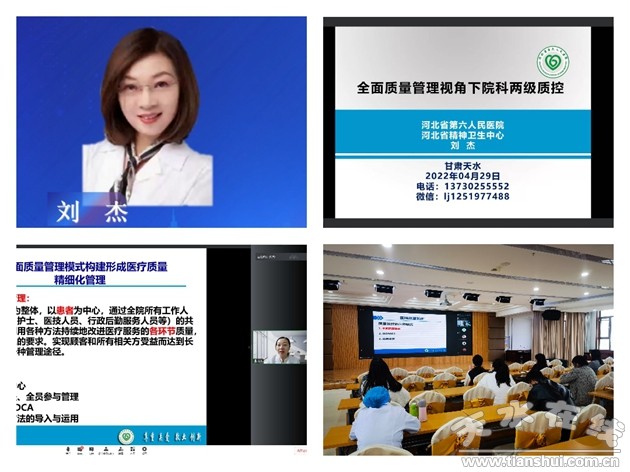 云端會(huì)議聚群力,學(xué)術(shù)交流暢未來。4月29日,由甘肅省護(hù)理學(xué)會(huì)精神科護(hù)理專業(yè)委員會(huì)、天水市第三人民醫(yī)院主辦的精神科護(hù)理專業(yè)委員會(huì)學(xué)術(shù)年會(huì)暨“精神科護(hù)理管理與創(chuàng)新”學(xué)習(xí)班在天水市三院成功舉辦。國家衛(wèi)健委醫(yī)院管理研究所醫(yī)院評(píng)審專家、中華護(hù)理學(xué)會(huì)精神衛(wèi)生專業(yè)委員會(huì)主任委員馬莉,甘肅省護(hù)理學(xué)會(huì)理事長、護(hù)理質(zhì)控中心主任韓琳及市三院院黨委書記丁志杰、院長李剛、副院長王剛平、院長助理李晶文共同參加了開幕儀式。本次學(xué)術(shù)會(huì)議采取線上、線下相結(jié)合的培訓(xùn)交流形式,來自甘肅省及周邊省份的近600余名護(hù)理管理者及護(hù)理骨干在線上參會(huì)。