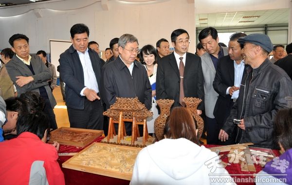 在學(xué)院黨委書記王志年、院長曹愛明等學(xué)院領(lǐng)導(dǎo)的陪同下,劉永富一行先后考察了學(xué)院近年的發(fā)展情況及建設(shè)規(guī)劃、沙特貸款項(xiàng)目的建設(shè)進(jìn)度、旅游專業(yè)的建設(shè)及培訓(xùn)工作開展情況、天水旅游工藝品設(shè)計(jì)研究所的工作進(jìn)展,并參觀了學(xué)院的辦學(xué)成果展出。