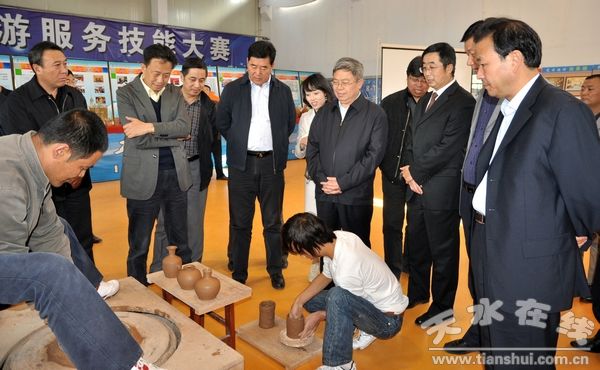 劉永富對(duì)天水旅游業(yè)的發(fā)展及學(xué)院旅游專業(yè)的建設(shè)工作作了具體指示:一是以項(xiàng)目為支撐,貫徹落實(shí)省旅游產(chǎn)業(yè)發(fā)展大會(huì)精神,以甘肅工業(yè)職業(yè)技術(shù)學(xué)院為依托,立項(xiàng)并建立天水旅游服務(wù)開放共享型實(shí)訓(xùn)基地;二是以學(xué)院藝術(shù)系天水旅游工藝品設(shè)計(jì)研究所為依托,加緊具有地方特色的旅游工藝品開發(fā);三是以學(xué)院旅游系茶藝專業(yè)為依托,建立甘肅省茶藝師培訓(xùn)及考證基地;四是對(duì)天水“農(nóng)家樂”進(jìn)行整體規(guī)劃,建立規(guī)范,形成良好的運(yùn)營模式。