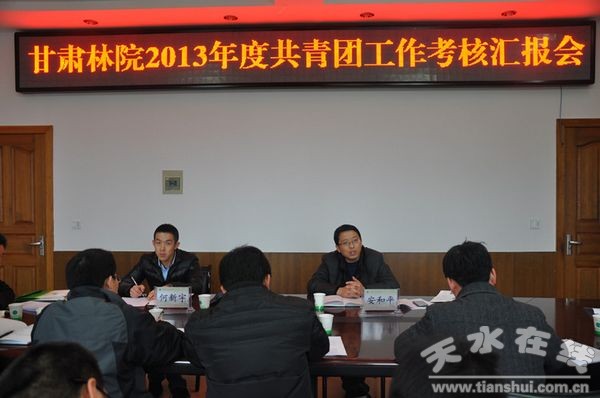 12月25日,團(tuán)市委考核組到甘肅林業(yè)職業(yè)技術(shù)學(xué)院考核共青團(tuán)工作。考核組青聯(lián)副主席安和平一行在團(tuán)委負(fù)責(zé)人及各系團(tuán)總支書(shū)記的陪同下,深入到學(xué)生公寓、雙建雙帶辦公室、大學(xué)生就業(yè)創(chuàng)業(yè)基地,就學(xué)院團(tuán)組織建設(shè)、黨建帶團(tuán)建、大學(xué)生思想政治教育、社會(huì)實(shí)踐、社團(tuán)建設(shè)、校園文化等具體工作的開(kāi)展情況進(jìn)行了詳細(xì)了解。隨后,在辦公樓會(huì)議室召開(kāi)了共青團(tuán)工作匯報(bào)會(huì)和座談會(huì)。學(xué)院團(tuán)委書(shū)記羅龍從所做的工作、存在的困難和問(wèn)題及今后的打算三個(gè)方面,就該院2013年共青團(tuán)工作和明年工作思路進(jìn)行了匯報(bào)。