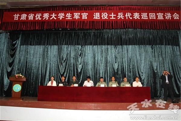 6月3日,甘肅省優(yōu)秀大學(xué)生軍官、退役士兵代表巡回宣講會在甘肅林職學(xué)院大禮堂舉行,甘肅省軍區(qū)司令部參謀張炳炎,麥積區(qū)區(qū)委常委、人武部部長楊聯(lián)繼,天水軍分區(qū)參謀梅順安,學(xué)院黨委委員、副院長冉福祥出席會議, 1200余名在校學(xué)生參加了會議。