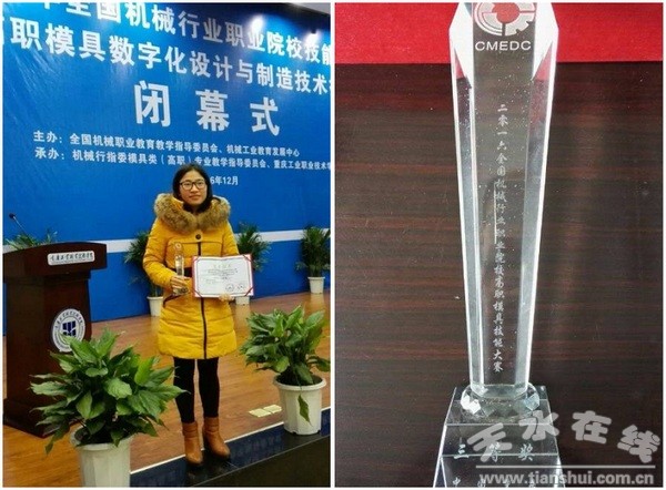 本次大賽分沖壓、注塑兩個賽項,按四個組別安排賽程。比賽內(nèi)容是由參賽選手根據(jù)事先給定的任務(wù)書和現(xiàn)場提供產(chǎn)品的三維原始數(shù)據(jù)和半成品模具,然后需要在比賽規(guī)定的6小時內(nèi)完成包括產(chǎn)品沖壓成形CAE分析、模具CAD、模具CAM與主要零件數(shù)控加工、模具裝調(diào)與成形、制件檢測與質(zhì)量分析等5項任務(wù)。甘肅機電職業(yè)技術(shù)學(xué)院參加了注塑模教師組、注塑模學(xué)生組和沖壓模學(xué)生組兩個賽項中的3個組別的比賽。經(jīng)過激烈角逐,最終青年教師楊莉獲得注塑模教師組三等獎。
