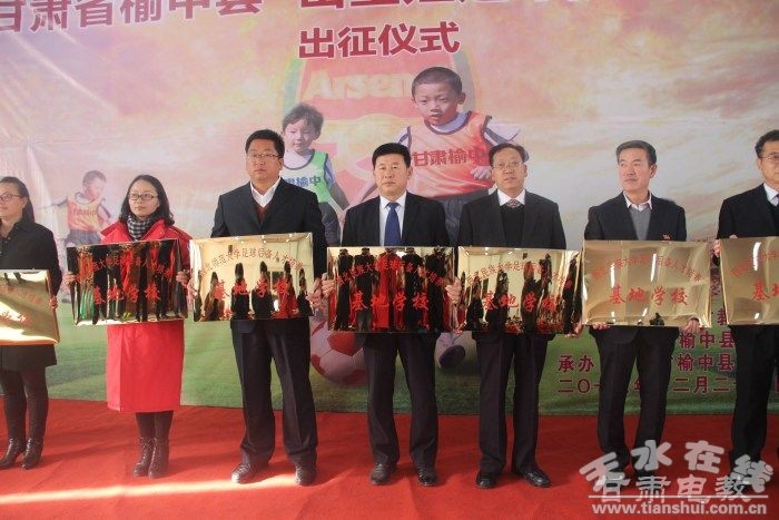 12月26日,榆中縣山里娃足球隊(duì)英國(guó)行出征暨足球后備人才培養(yǎng)基地學(xué)校授牌儀式在榆中縣文成小學(xué)舉行,省教育廳副廳長(zhǎng)劉宏、巡視員旦智塔和志愿者謝建華為赴英隊(duì)員壯行。