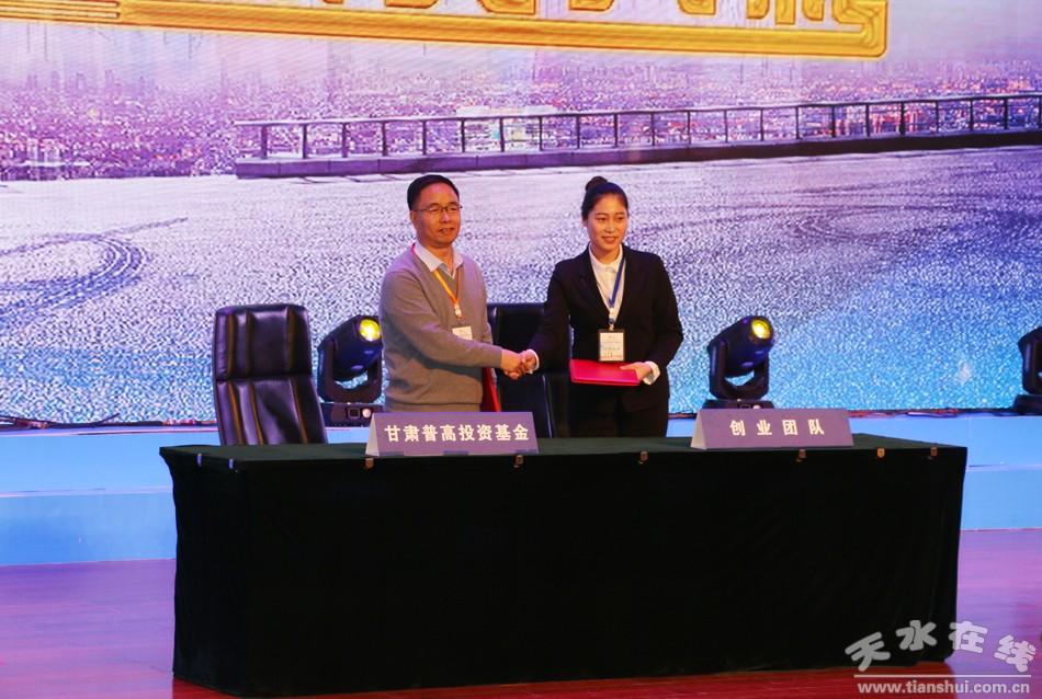 天水師范學院“天水市大櫻桃微商助農平臺”項目獲獎后,與甘肅普高創(chuàng)業(yè)投資有限公司進行了現(xiàn)場簽約投資意向洽談。本次大賽被簽約的項目僅五項,學校斬獲一項。 |