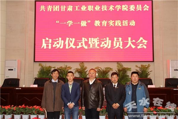 為深入學(xué)習(xí)習(xí)近平總書記系列講話精神,貫徹落實(shí)團(tuán)中央關(guān)于在全體共青團(tuán)員中開展“學(xué)習(xí)總書記講話,做合格共青團(tuán)員”會(huì)議精神,深入推進(jìn)共青團(tuán)改革,大力推進(jìn)從嚴(yán)治團(tuán),切實(shí)增強(qiáng)團(tuán)員的先進(jìn)性和光榮感,甘肅工業(yè)職業(yè)技術(shù)學(xué)院校團(tuán)委于4月11日,在該校圖書館報(bào)告廳舉行共青團(tuán)甘肅工業(yè)職業(yè)技術(shù)學(xué)院委員會(huì)“一學(xué)一做”教育實(shí)踐活動(dòng)啟動(dòng)儀式暨動(dòng)員大會(huì)。該校校黨委書記王志年、天水市團(tuán)市委青年權(quán)益部部長(zhǎng)何新宇、學(xué)校宣傳部長(zhǎng)楊建國(guó)出席,學(xué)校學(xué)工處長(zhǎng)、校團(tuán)委書記曹惠清、學(xué)工處副處長(zhǎng)韓國(guó)杰,以及各二級(jí)學(xué)院團(tuán)總支書記、副書記,各班團(tuán)支書、宣傳委員、組織委員代表參加啟動(dòng)儀式。
