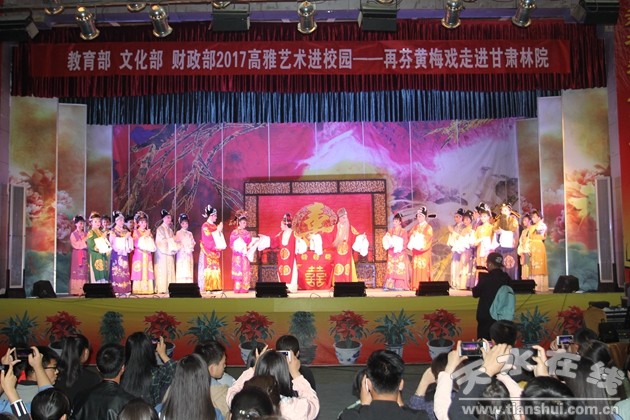 一曲一調(diào)悠揚婉轉(zhuǎn)夢回千古,一顰一笑千姿百媚盡展黃梅之韻。4月25晚,由教育部、文化部、財政部共同組織的2017年“高雅藝術(shù)進校園”安徽再芬黃梅藝術(shù)劇院走進甘肅林業(yè)職業(yè)技術(shù)學(xué)院,在該學(xué)院大禮堂精彩演繹黃梅戲傳統(tǒng)經(jīng)典劇目《五女拜壽》。該學(xué)院副院長虎保成,黨委宣傳部、學(xué)生處等部門負責(zé)人與1200余名師生共同觀看了演出。