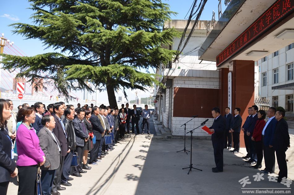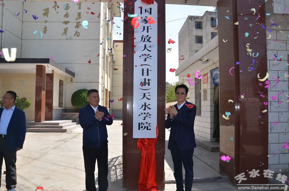 4月27日,國(guó)家開放大學(xué)甘肅分部天水學(xué)院揭牌儀式舉行。甘肅廣播電視大學(xué)黨委書記朱衛(wèi)國(guó),天水市委常委、宣傳部長(zhǎng)蒲軍為天水學(xué)院揭牌。甘肅廣播電視大學(xué)校長(zhǎng)張方明出席揭牌儀式。