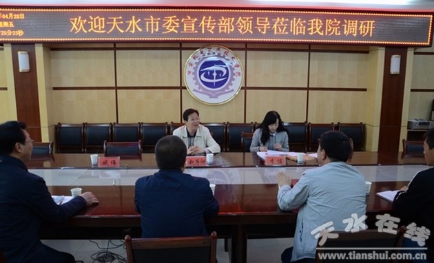 5月3日上午,天水市宣傳思想文化工作督查調(diào)研組第三組組長(zhǎng)、市委宣傳部副部長(zhǎng)趙子洲一行三人深入甘肅機(jī)電職業(yè)技術(shù)學(xué)院就宣傳思想文化工作開展情況進(jìn)行督查調(diào)研。副院長(zhǎng)李自勇及黨委辦公室、宣傳部、學(xué)工部、團(tuán)委等部門負(fù)責(zé)人參加調(diào)研。