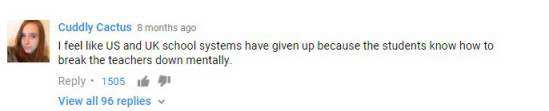 我感覺(jué)美國(guó)和英國(guó)的教育系統(tǒng)已經(jīng)要棄療了,因?yàn)槟莾旱膶W(xué)生們太了解怎么扎老師的心了。