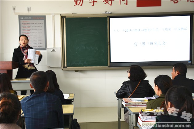 10月14日下午,天水一中麥積校區(qū)在主教學(xué)樓一樓報(bào)告廳召開(kāi)了第一學(xué)段考試分析家長(zhǎng)會(huì)。副校長(zhǎng)宋廷軍,教務(wù)二處副主任王金旺,高一級(jí)370余名學(xué)生家長(zhǎng)參加。高一級(jí)部級(jí)長(zhǎng)閆建峰主持會(huì)議。