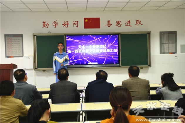 10月20日下午,天水一中麥積校區(qū)在高中教學樓212教室舉辦了第一屆班級文化建設匯報評比活動。校領導親臨賽場觀摩指導,各處室負責人,初、高中班主任和部分教師參加了活動。麥積校區(qū)七年級和高一級共11個班級以班為單位參加了比賽。