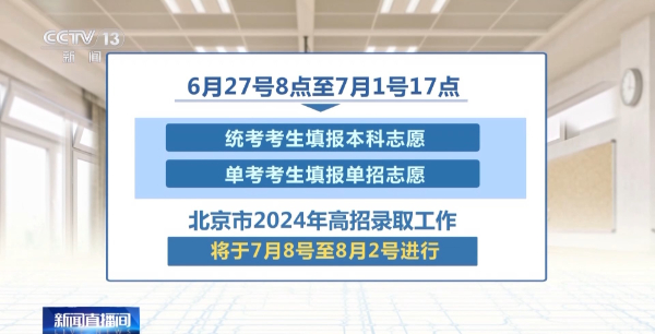 2024年北京市高考成績將于6月25日中午前發(fā)布。同時(shí),將發(fā)布各批次錄取最低控制分?jǐn)?shù)線和北京市考生分?jǐn)?shù)分布表。6月27日8點(diǎn)至7月1日17點(diǎn),統(tǒng)考考生填報(bào)本科志愿,單考考生填報(bào)單招志愿。北京市2024年高招錄取工作將于7月8日至8月2日進(jìn)行。