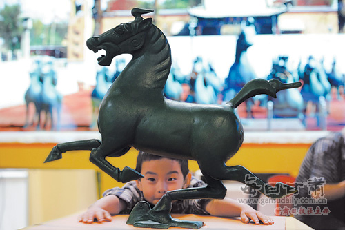 銅奔馬吸引了孩子的目光。本報記者 郁婕 攝