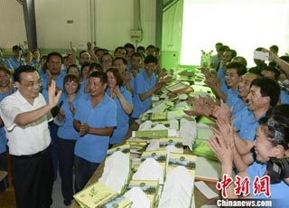 國務院總理李克強18日下午到蘭州華宇包裝彩印公司考察。廖攀 攝