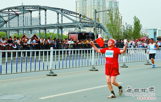 7時30分,鳴槍聲響,孩子們分別牽著10名引導(dǎo)老師的手,抬步向前,周圍的加油聲、歡呼聲此起彼伏。蘭州市盲聾啞學校校長康玉亮認為:“對于這些孩子們來說,這是他們?nèi)松兄匾囊淮误w驗。”其實,這些孩子們的人生何嘗不是一場馬拉松,唯有挑戰(zhàn)自我、超越極限、永不放棄,才能成為追趕太陽的人……