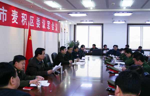 3月8日上午,麥積區(qū)委書記蔣曉強親自主持召開區(qū)委議軍會議,實實在在幫助駐區(qū)部隊解決了一些難點問題。區(qū)四大組織領導、駐區(qū)部隊領導及財政、人事、民政、綜合執(zhí)法等相關單位和馬跑泉、社棠、花牛、渭南、橋南等鄉(xiāng)鎮(zhèn)、辦事處負責同志參加了會議。