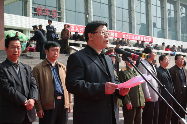 4月9日上午,麥積區(qū)在火車(chē)站廣場(chǎng)隆重舉行“知榮辱、樹(shù)新風(fēng)、建和諧、促發(fā)展”倡議活動(dòng)啟動(dòng)儀式,旨在倡導(dǎo)和號(hào)召全區(qū)廣大干部職工和社會(huì)各界群眾積極行動(dòng)起來(lái),從我做起,從具體事情做起,從一點(diǎn)一滴做起,自覺(jué)投入“知榮辱、樹(shù)新風(fēng)、建和諧、促發(fā)展”活動(dòng),在全區(qū)上下迅速掀起一個(gè)學(xué)習(xí)、宣傳、實(shí)踐社會(huì)主義榮辱觀的新高潮。
