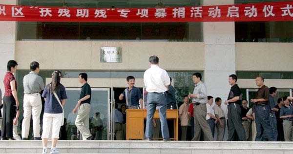 在不到一小時間的啟動儀式上,共有110多名領導干部帶頭捐款達6100多元。各鄉(xiāng)鎮(zhèn)、部門的募捐活動將隨后全面展開。