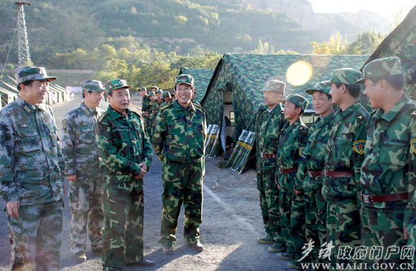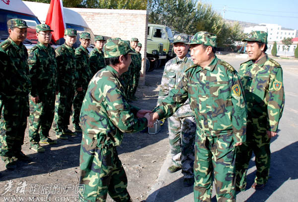 10月22日下午,麥積區(qū)委副書記、區(qū)長張克強(qiáng),區(qū)委副書記馬兆讓,在天水預(yù)備役旅炮兵團(tuán)團(tuán)長王新生,政委夏立軍的陪同下,前往駐市某師訓(xùn)練場(chǎng)看望慰問正在這里參加“隴原—09”應(yīng)急處突演習(xí)集訓(xùn)的天水預(yù)備役旅炮兵團(tuán)廣大官兵和麥積區(qū)參加演習(xí)任務(wù)的民兵預(yù)備人員,并為他們送去了食品、礦泉水等慰問物資。