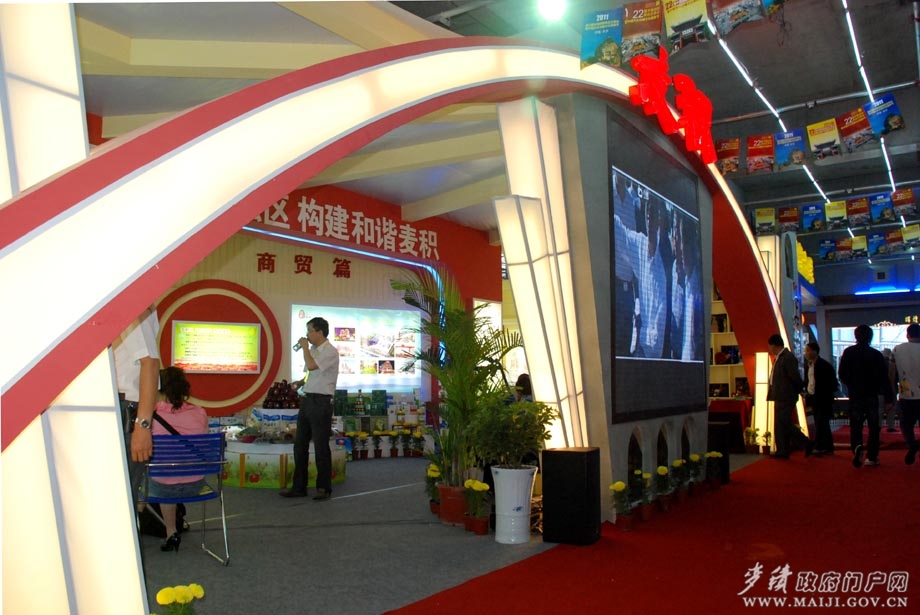 據(jù)悉,第22屆西交會麥積區(qū)展館以“開放促開發(fā)、互惠求發(fā)展”為主題,采取產(chǎn)品展示與產(chǎn)品展銷相結(jié)合,燈箱圖片、文字說明與產(chǎn)品實(shí)物相結(jié)合的方式布展。共分為城鄉(xiāng)建設(shè)、工業(yè)、農(nóng)業(yè)、商貿(mào)和旅游五個篇章。展出實(shí)物包括四大類41個品種、400余件物品,圖片布置47幅,突出展示了我區(qū)名、優(yōu)、新、特產(chǎn)品,旅游資源及經(jīng)濟(jì)社會建設(shè)取得的新成就。整個展館裝飾新穎,內(nèi)容豐富,重點(diǎn)突出,特色鮮明,使人感覺耳目一新。