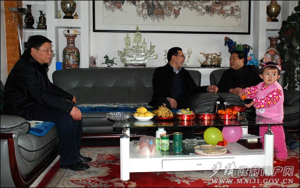 春節(jié)來(lái)臨之際,1月9日上午,麥積區(qū)四大組織在家領(lǐng)導(dǎo)張智明、賈應(yīng)珍、何東、楊鐵森等,專程對(duì)離退休老干部、老領(lǐng)導(dǎo)、優(yōu)秀老黨員和高級(jí)知識(shí)分子、住院老干部進(jìn)行走訪看望和慰問(wèn),向他們致以新春佳節(jié)祝福和問(wèn)候的同時(shí),也給他們帶去了黨和政府的溫暖與關(guān)懷。