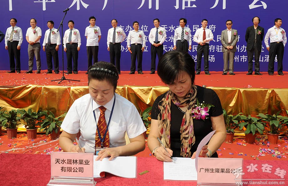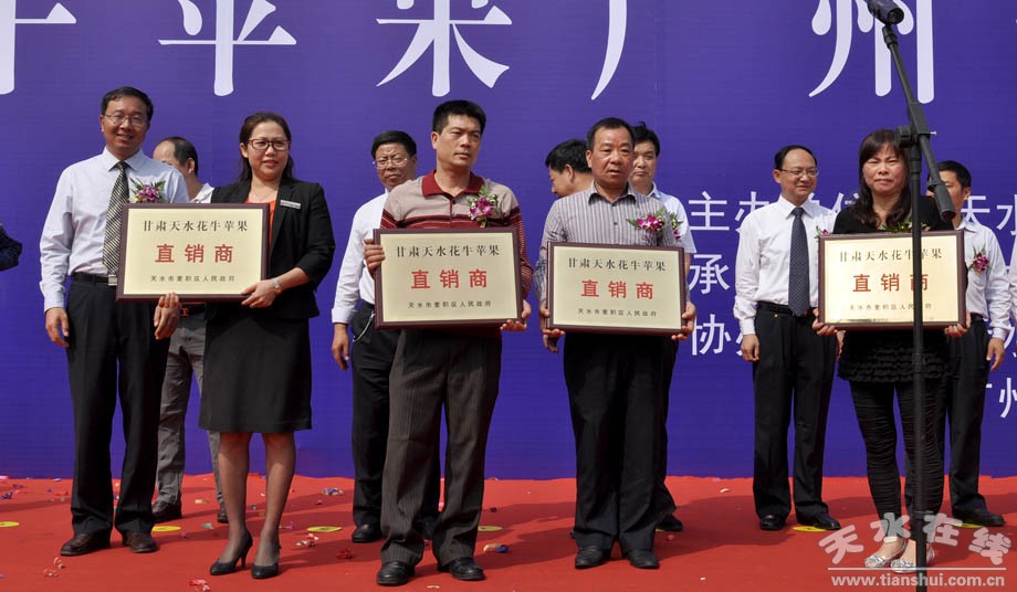 當天,出席推介會的天水市和麥積區(qū)領(lǐng)導(dǎo)給廣州市白云區(qū)萬達廣場江山酒家、廣州市豐恒農(nóng)產(chǎn)品進出口有限公司、廣州市生隆果品公司、廣東省江山市興達水果經(jīng)銷部等4家花牛蘋果廣州經(jīng)銷商進行了授牌,標志著享譽四海的天水花牛蘋果在廣州正式“落戶”。同時,天水精誠果業(yè)有限公司與國權(quán)江南果行,天水康鑫果業(yè)有限公司與廣州國祥果業(yè)有限公司,天水德盛果蔬進出口有限公司與廣州優(yōu)果進出口有限公司,麥積新民蘋果種植專業(yè)合作社與深圳華南國源農(nóng)產(chǎn)品批發(fā)有限公司,天水晟林果業(yè)公司與廣州生隆果品公司,天水伯林果業(yè)有限公司與江門興達果品購銷部,麥積水陽石果品種植專業(yè)合作社與江南廣信果行,麥積康晟源果品專業(yè)合作社與江南裕新果行簽訂了花牛蘋果購銷協(xié)議。
