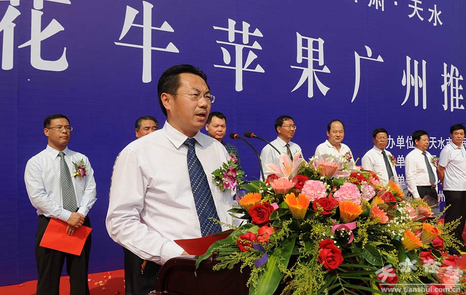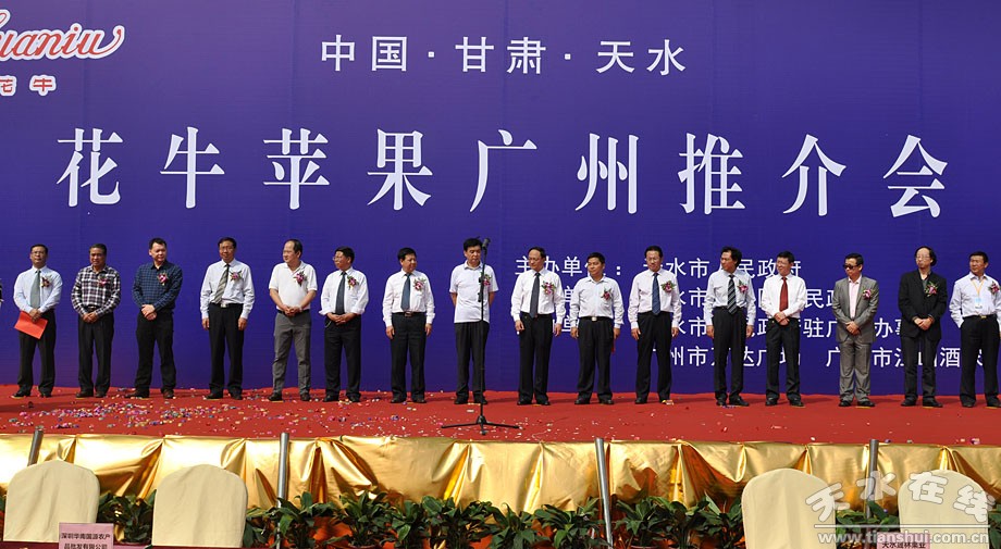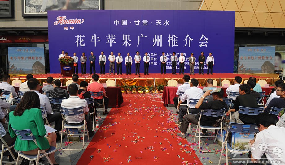 深秋時節(jié)的羊城廣州,惠風(fēng)送爽,瓜果飄香。正值全國人民以飽滿的熱情喜迎黨的第十八次全國代表大會隆重召開之際,11月3日上午10點,由甘肅省天水市人民政府主辦,天水市麥積區(qū)人民政府承辦,天水市人民政府駐廣州辦事處、廣州市白云區(qū)萬達廣場、江山酒家協(xié)辦的“中國·甘肅·天水花牛蘋果廣州推介會”,在廣州市白云區(qū)萬達廣場隆重舉行,這是繼2009’中國蘋果年會暨天水花牛蘋果節(jié)、2010年天水花牛蘋果北京推介會等系列強力宣傳推介活動之后,麥積區(qū)為進一步做大做強花牛蘋果產(chǎn)業(yè)、精心打造花牛蘋果品牌舉辦的又一高規(guī)格宣傳推介盛會。