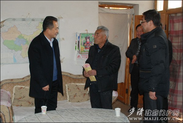 春節(jié)臨近,1月13日,麥積區(qū)委副書記、區(qū)長成少平,區(qū)委常委、政法委書記臧志軍,區(qū)委常委、馬跑泉鎮(zhèn)黨委書記杜崢嶸,區(qū)人大常委會副主任劉克寧,區(qū)政協(xié)副主席王啟峰等領(lǐng)導走訪慰問了部分離退休老干部、困難黨員、優(yōu)秀黨員、特困戶、殘疾人、困難職工、二女戶和優(yōu)秀知識分子,為他們送上慰問金和慰問品,送上新春祝福和誠摯問候。