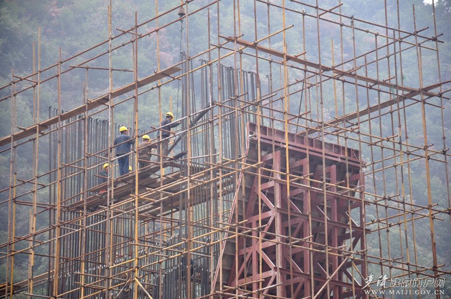10月10日,時(shí)至深秋。街面上已經(jīng)有點(diǎn)寒意襲人,而位于東岔鎮(zhèn)境內(nèi)的寶蘭客專筆架山隧道交川溝特大橋建設(shè)現(xiàn)場(chǎng)卻是一派人頭攢動(dòng)、熱火朝天的大干景象。在施工工地現(xiàn)場(chǎng),中鐵十局負(fù)責(zé)人王文斌正帶領(lǐng)工人們爭(zhēng)分奪秒地加快鐵路項(xiàng)目建設(shè)。他告訴筆者:“筆架山隧道為寶蘭客專全線最大埋深的隧道,全長(zhǎng)14.7km,穿越交川溝與秦嶺溝之間的中高山,最大埋深715m;交川溝特大橋?yàn)楸緲?biāo)段最長(zhǎng)橋梁,橋長(zhǎng)1057.6m,最大橋高38m;東岔站就建在這里,是寶蘭客運(yùn)專線在天水境內(nèi)所設(shè)東岔、天水南、秦安3處中間站之一,設(shè)計(jì)停車時(shí)間2分鐘。”