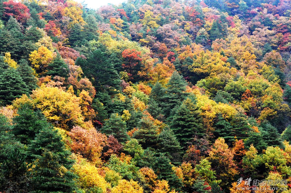 群峰聳峙,五彩斑斕;溪水潺湲,飛珠濺玉。