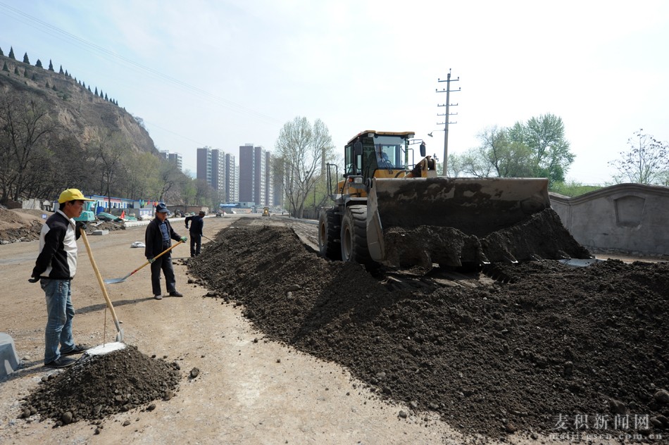 4月10日,記者在麥積區(qū)區(qū)府路西延段道路建設(shè)工地現(xiàn)場看到,大型機械來回穿梭,挖掘機、灑水車配合默契攪拌砂料;推土機、夯壓機平整路基、鎮(zhèn)壓路面;裝載機清理路障……工程建設(shè)正酣,高歌猛進。