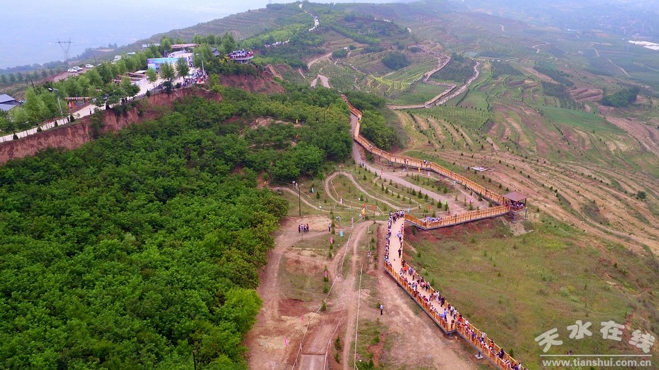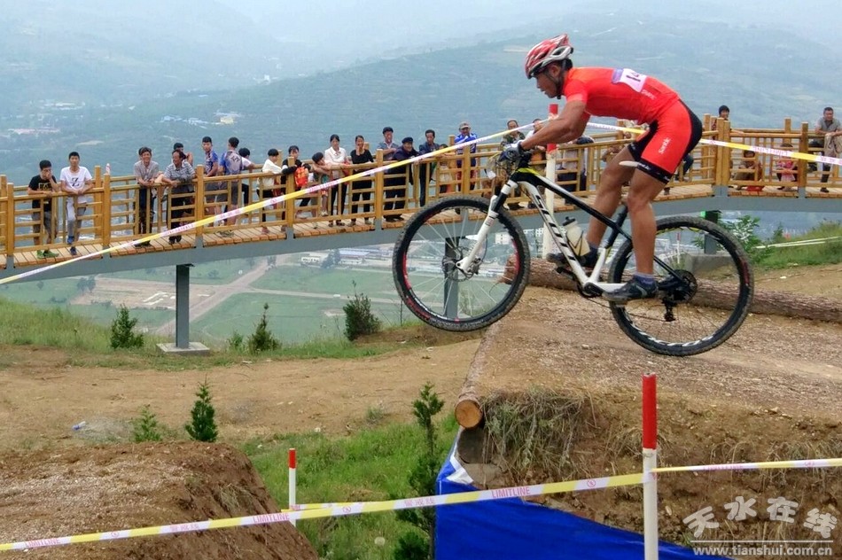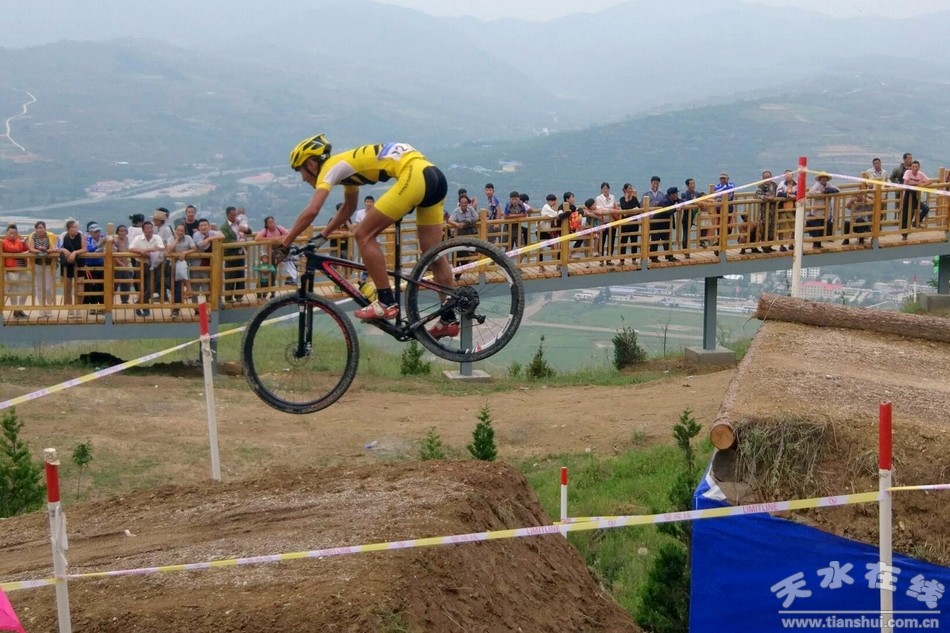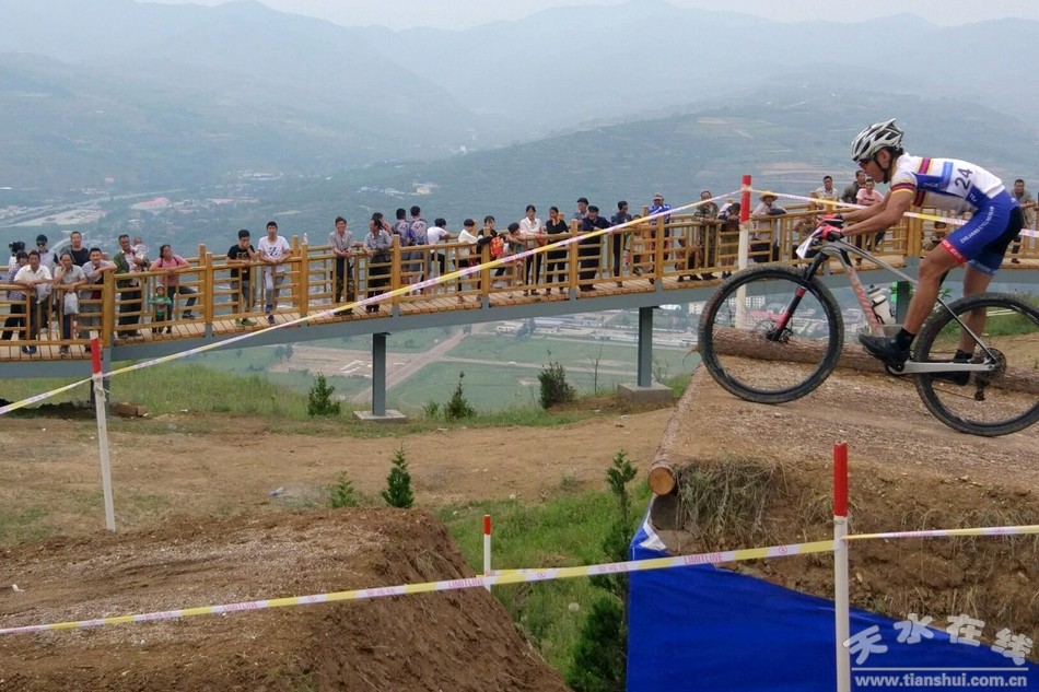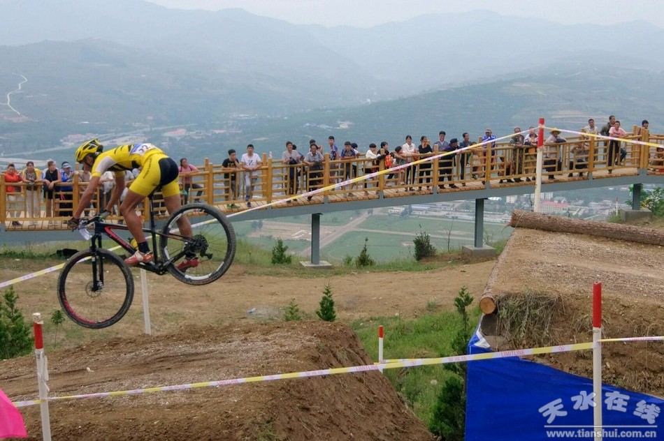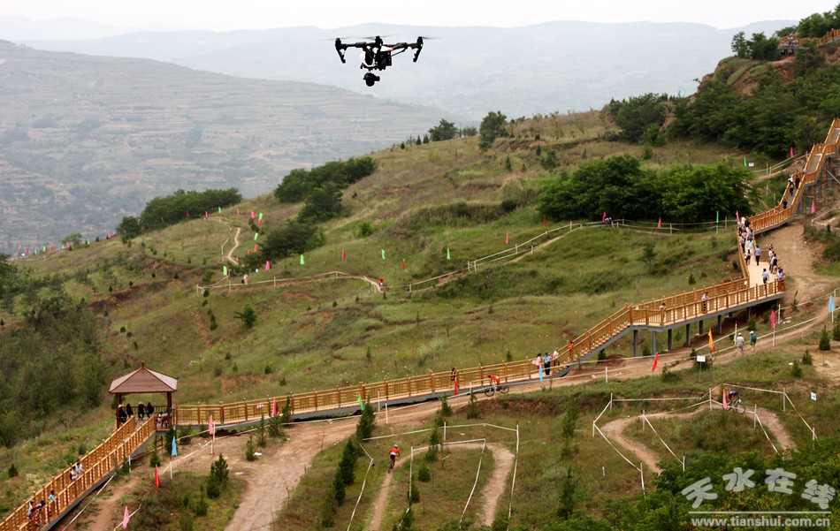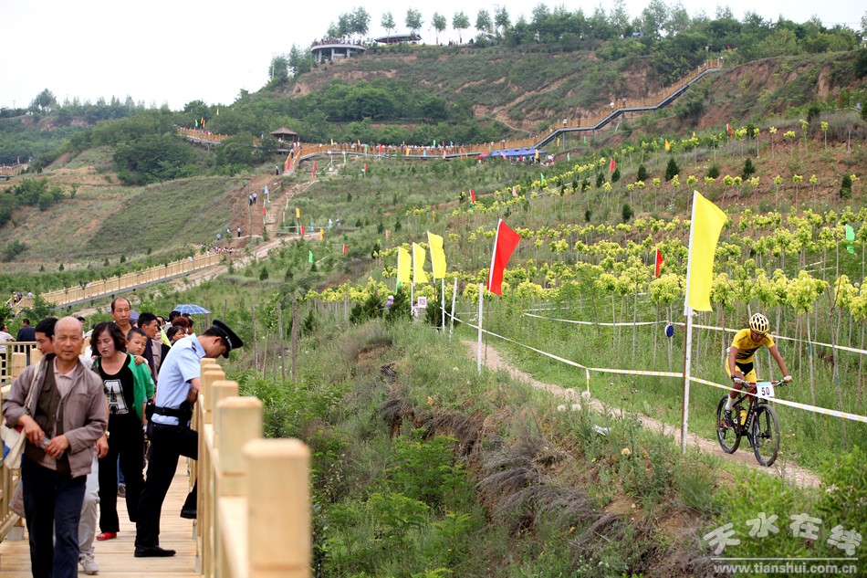 舉辦本次比賽的麥積區(qū)國家山地自行車訓(xùn)練基地位于該區(qū)甘泉鎮(zhèn)翠山梁西坡,在穎川河流域綜合開發(fā)區(qū)內(nèi),地處麥積主城區(qū)、天水國家級(jí)經(jīng)濟(jì)技術(shù)開發(fā)區(qū)與麥積山5A級(jí)風(fēng)景區(qū)三大功能板塊之間,區(qū)位優(yōu)勢(shì)獨(dú)特,景色秀美。翠山梁東西兩側(cè)分布的東柯河、穎川河流域,既是全市文化旅游資源聚集區(qū),也是我市城市拓展的最佳承載區(qū)。值得一提的是,在成功舉辦2015年全國山地自行車錦標(biāo)賽之后,今年麥積區(qū)按照相關(guān)技術(shù)要求和標(biāo)準(zhǔn),對(duì)賽道做了進(jìn)一步改建和完善,同時(shí)新建了觀賽健身步道。該步道依托翠山自然山體,由南向北綿延,與賽道并行,全長1.45公里,主體為鋼結(jié)構(gòu)架設(shè),鋪設(shè)防腐木地板。這也是全國第一家景觀步道和山地賽道并行建成的專業(yè)賽道,極大地提高了比賽的觀賞性和趣味性,成為今年本屆賽事的一大亮點(diǎn),也為今后舉辦更高規(guī)格的賽事活動(dòng)打下了堅(jiān)實(shí)基礎(chǔ)。
