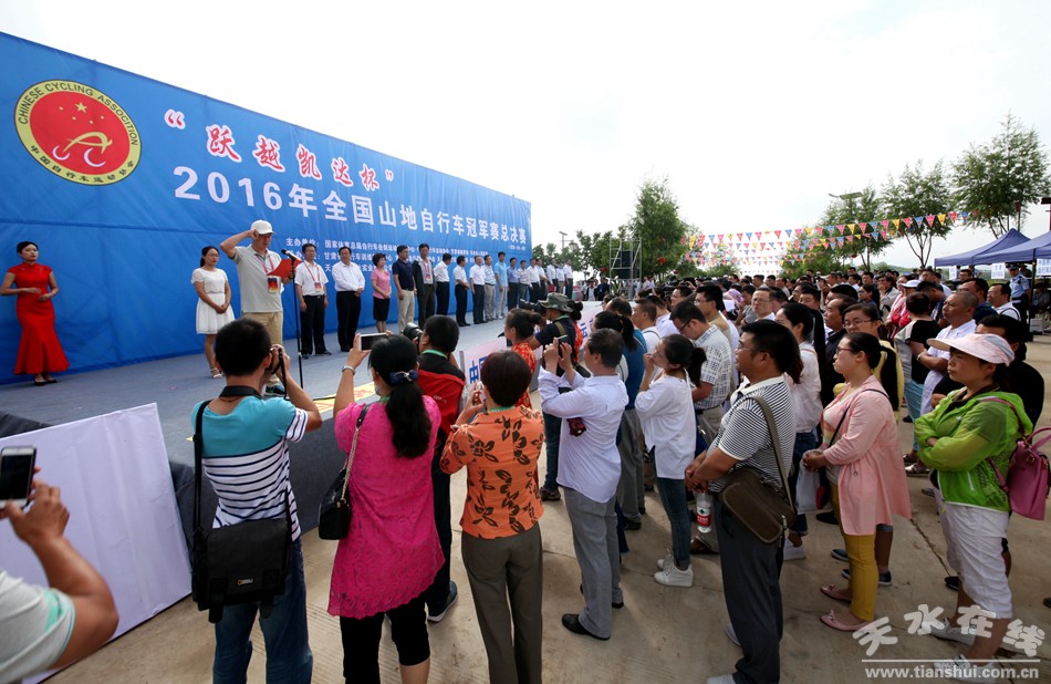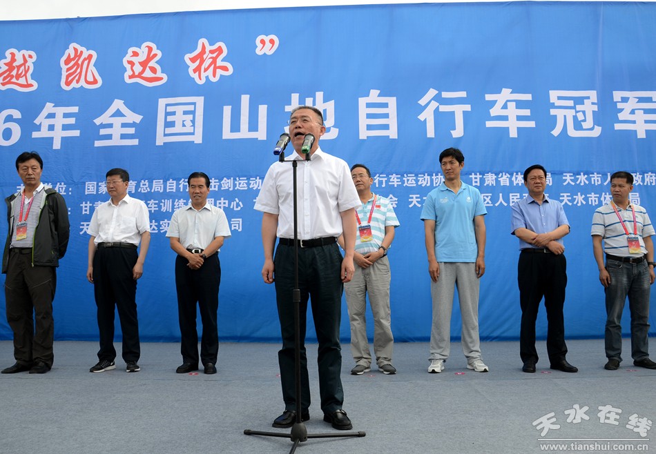 。ㄌ焖腥舜蟪N瘯(huì)主任柴金祥,市委副書記、市長楊維俊,市委副書記、市政協(xié)主席宋尚有,中國自行車運(yùn)動(dòng)協(xié)會(huì)副秘書長牛洪濤,麥積區(qū)委副書記、區(qū)長成少平鳴槍開賽。)