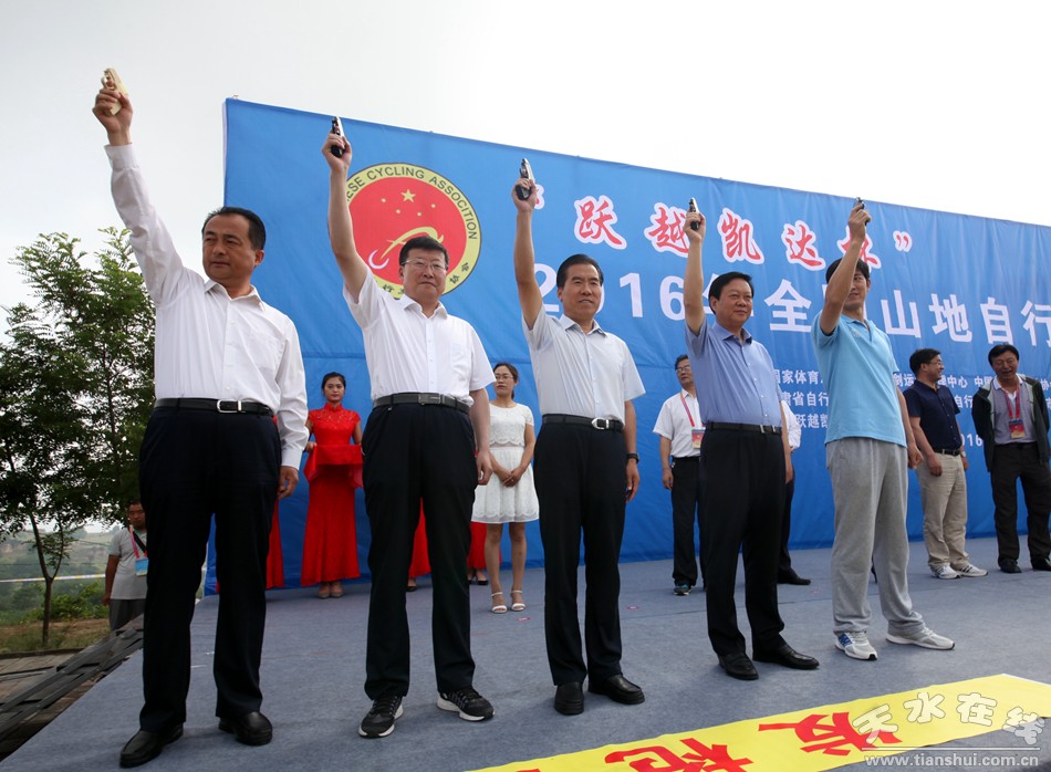 國家體育總局自行車擊劍運(yùn)動(dòng)管理中心自行車部副部長、中國自行車運(yùn)動(dòng)協(xié)會(huì)副秘書長牛洪濤,甘肅省體育局局長楊衛(wèi)及天水市委書記王銳,市人大常委會(huì)主任柴金祥,市委副書記、市長楊維俊,市委副書記、市政協(xié)主席宋尚有,市委常委、市委秘書長蔣曉強(qiáng),市委常委、宣傳部長王正茂, 副市長張建杰,市政協(xié)副主席白曉玲,市政府秘書長逯克宗出席開賽儀式。