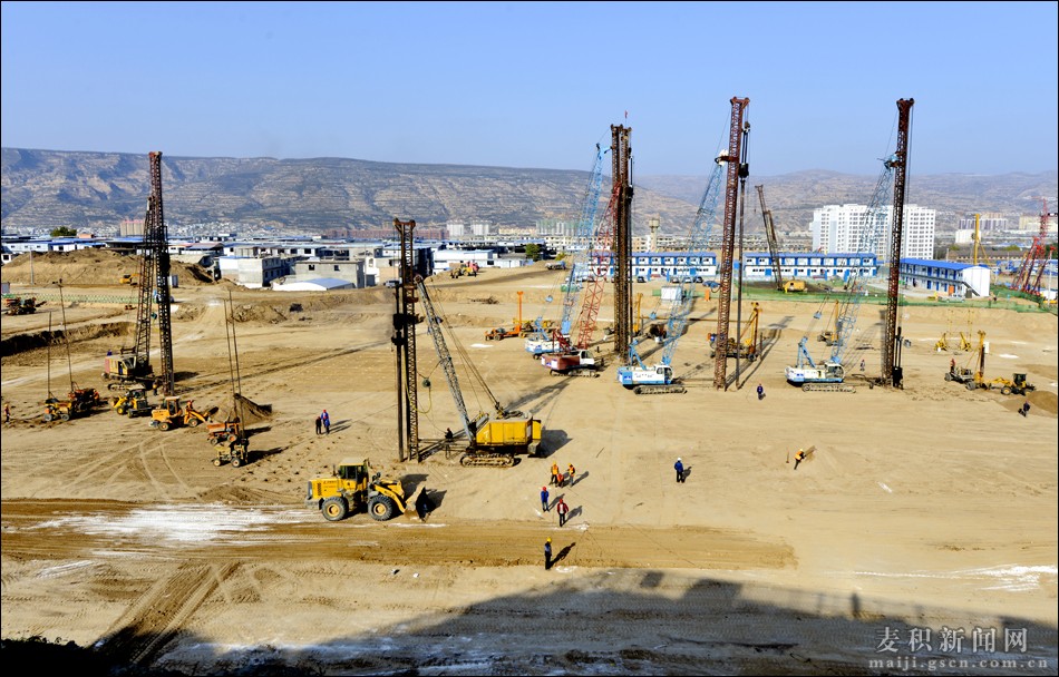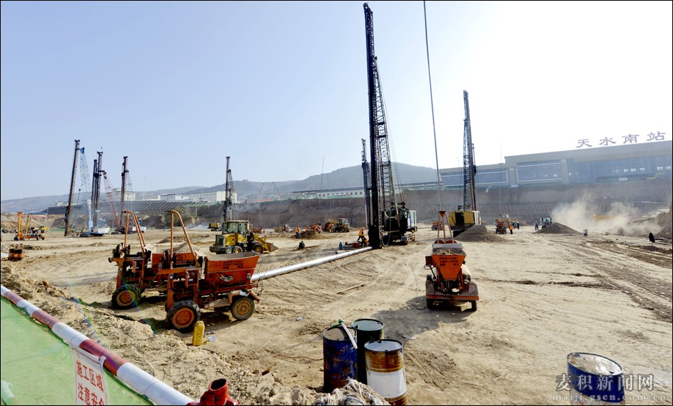 12月5日,記者在天水南站站前廣場(chǎng)施工現(xiàn)場(chǎng)看到一派繁忙的建設(shè)場(chǎng)景,各種工程車(chē)輛來(lái)來(lái)往往,打樁機(jī)的聲音震耳欲聾,施工場(chǎng)面震撼而有序。