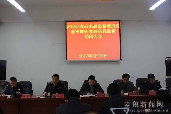 春節(jié)將至,為確保2017年春節(jié)期間廣大人民群眾飲食用藥安全,維護食品藥品市場秩序和社會穩(wěn)定,使人民群眾過上一個歡樂祥和的節(jié)日,1月11日,麥積區(qū)食藥監(jiān)局召開春節(jié)期間食品藥品監(jiān)管動員大會,就春節(jié)前轄區(qū)內(nèi)食品藥品安全工作進行了安排部署。