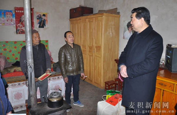 楊根林一行慰問(wèn)了劉進(jìn)喜、鞏永勝、劉興海、焦三喜、楊昌世、鄭大娃、石培基、張?zhí)於鞯嚷?lián)系戶和困難戶。每到一處,楊根林與他們親切交談,噓寒問(wèn)暖,詳細(xì)詢問(wèn)他們生產(chǎn)生活、家庭收入、子女上學(xué)就業(yè)和身體健康狀況,鼓勵(lì)他們要對(duì)生活充滿信心,通過(guò)自己的辛勤勞動(dòng),改變貧困面貌,提高生活水平,并囑咐他們要多注意身體,把子女培養(yǎng)好,努力把日子越過(guò)越好。