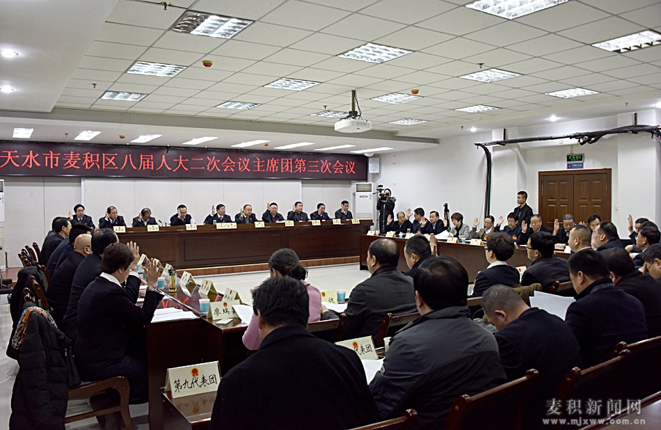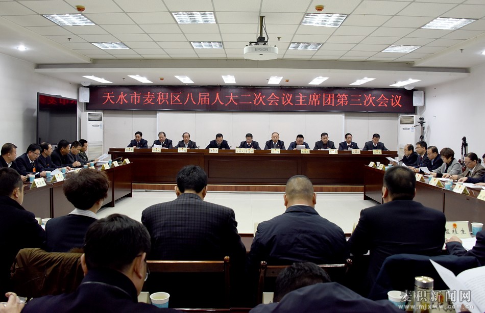 12月29日上午,天水市麥積區(qū)第八屆人民代表大會(huì)第二次會(huì)議舉行主席團(tuán)第三次會(huì)議。會(huì)議應(yīng)到主席團(tuán)成員45人,實(shí)到37人,合于法定人數(shù)。賈應(yīng)珍主持會(huì)議。
